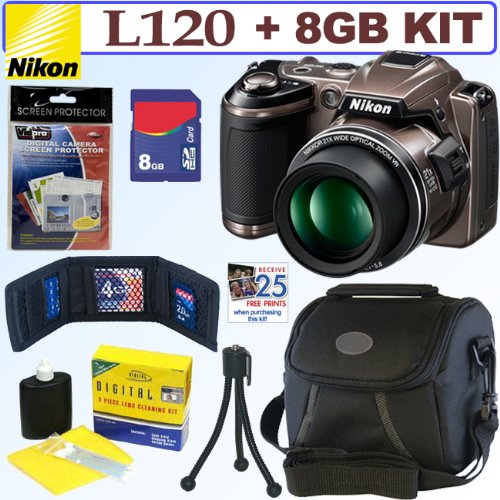 Nikon Coolpix L120 14.1 MP Digital Camera (Bronze) + 8GB Accessory Kit