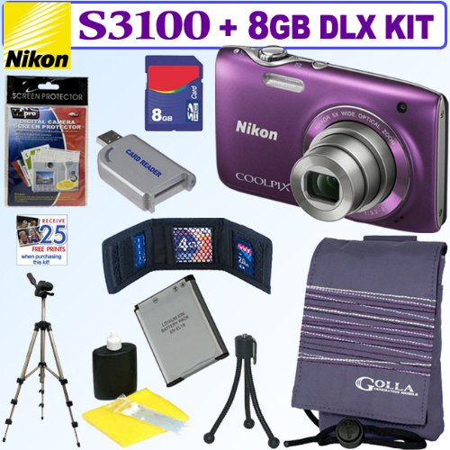 For this price, the Nikon Coolpix S3100 14 MP Digital Camera (Purple) + 8GB Deluxe Accessory Kit comes widely recommended and is always a popular choice for lots of people. Nikon SLR Digital camera have included some excellent touches and this results in great value.